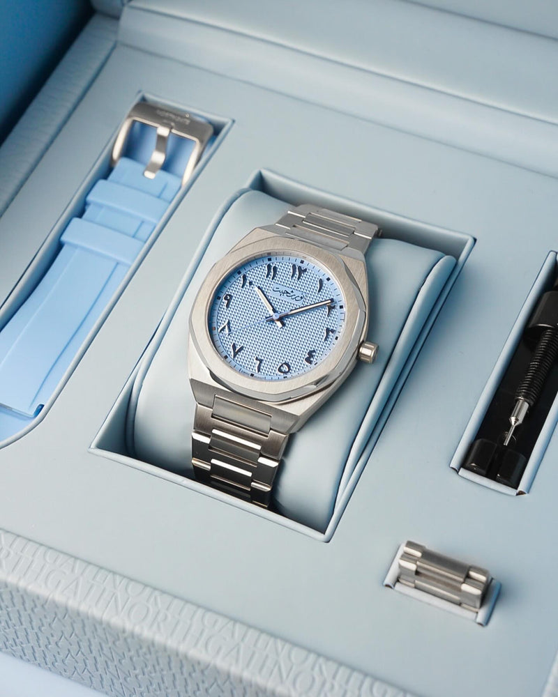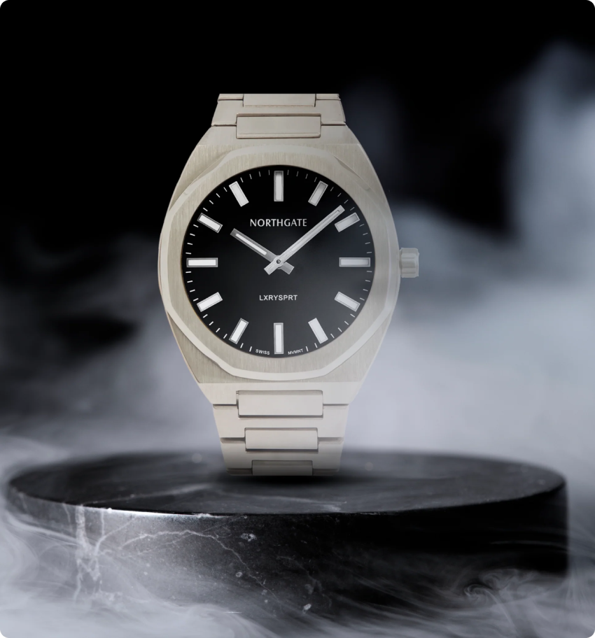 I thought it was time to design a new watch, which offers a lot for the user. By that I don't just mean a balanced and fresh design, but also with specifications that you normally find in much more expensive watches. I think it is important that the wearer of a watch enjoys wearing the watch every day and that it is also suitable for multiple occasions. That's why I call this design The New LXRYSPRT Watch. A watch with a luxurious but also sporty look. The case design is inspired by designs from the 1970s. Many Swiss brands used cases from which this Northgate case is derived.